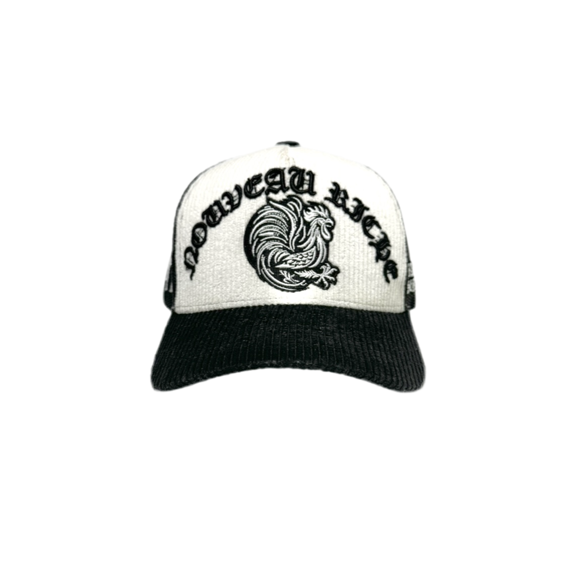 Black courderoy bill with white courderoy face / mesh back SnapBack